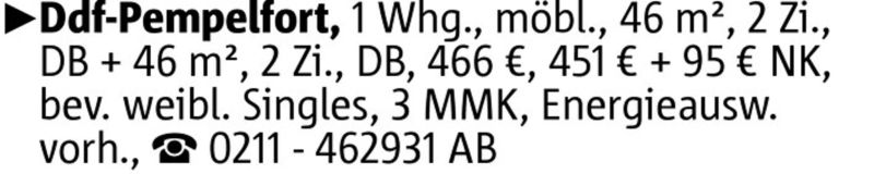 Welcome to your new urban retreat at 1 Whg. in Düsseldorf-Pempelfort zu vermieten! This modern 2-bedroom apartment offers a stylish and cozy living space. The open-concept layout is perfect for entertaining, and the sleek kitchen is equipped with top-of-the-line appliances. With its prime location, you'll be just steps away from the city's best restaurants, shops, and entertainment venues. Priced affordably at € 451, this apartment is a fantastic opportunity to enjoy city living at its finest. Don't miss out – schedule a viewing today!