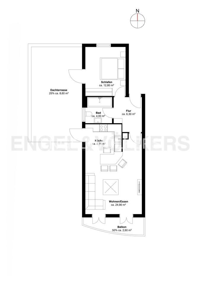 € 1,600/month, min. 2 bedrooms