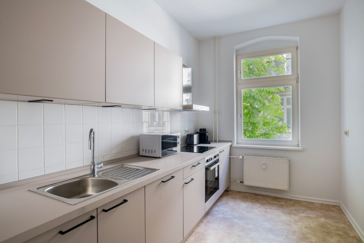Welcome to your new urban retreat at Scharnweber, Scharnweberstraße, Friedrichshain, Berlin! This modern 1-bedroom apartment offers a stylish and cozy living space. The open-concept layout is perfect for entertaining, and the sleek kitchen is equipped with top-of-the-line appliances. With its prime location, you'll be just steps away from the city's best restaurants, shops, and entertainment venues. Priced affordably at € 1,010, this apartment is a fantastic opportunity to enjoy city living at its finest. Don't miss out – schedule a viewing today!