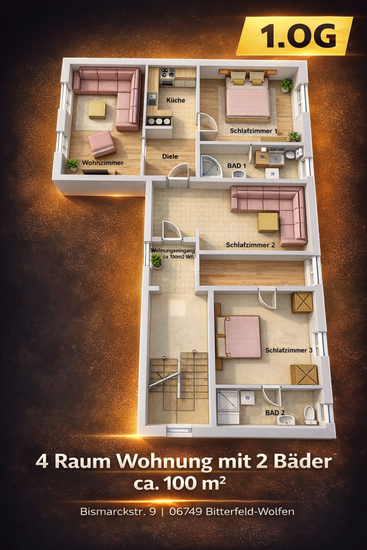 Welcome to your new urban retreat at Bismarckstr.9, 06749 Sachsen-Anhalt - Bitterfeld! This modern 4-bedroom apartment offers a stylish and cozy living space. The open-concept layout is perfect for entertaining, and the sleek kitchen is equipped with top-of-the-line appliances. With its prime location, you'll be just steps away from the city's best restaurants, shops, and entertainment venues. Priced affordably at € 690, this apartment is a fantastic opportunity to enjoy city living at its finest. Don't miss out – schedule a viewing today!