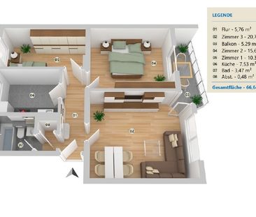 Die zu vermietende Wohnung befindet sich im 3. OG einer c...