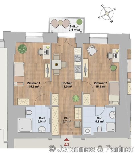 € 1.000/Monat, min. 2 zimmer