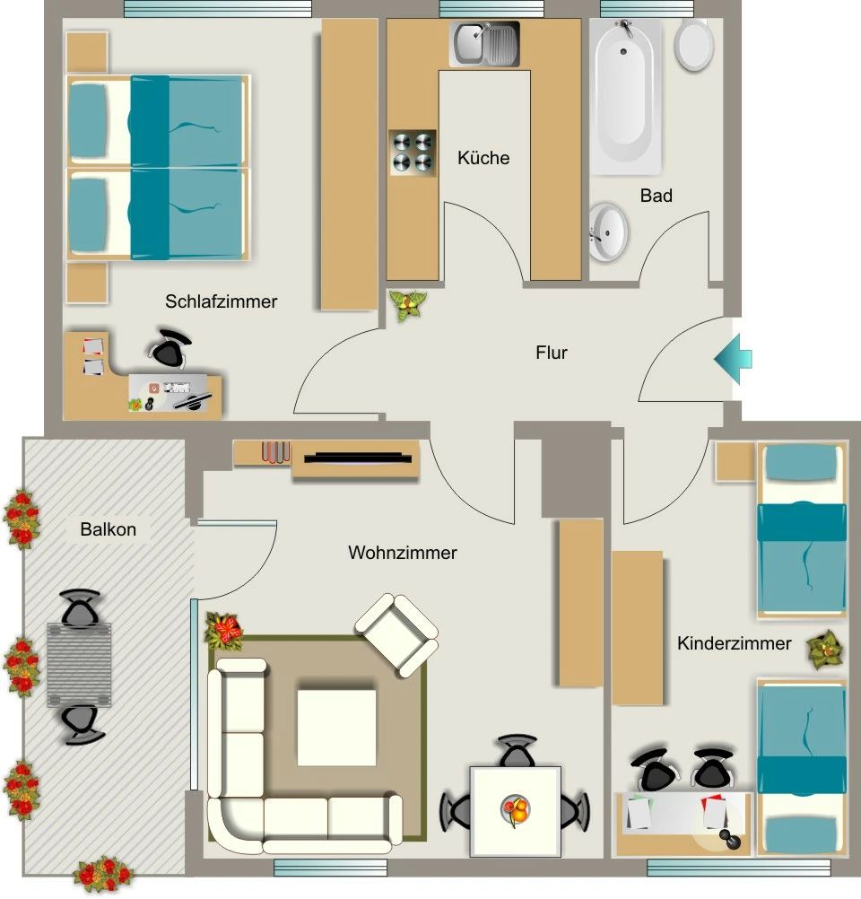 € 600/Monat, min. 3 zimmer