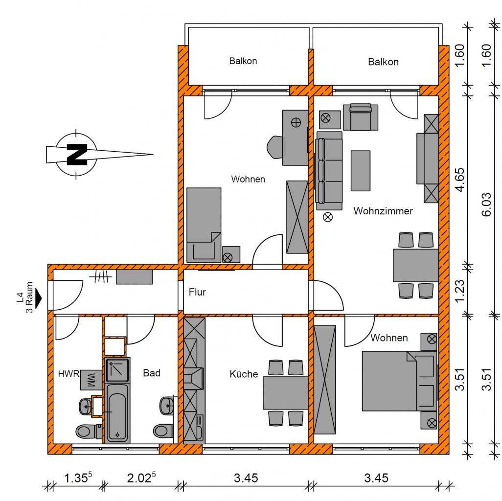 € 600/Monat, min. 3 zimmer