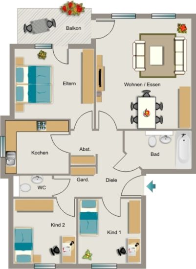 € 1.000/Monat, min. 4 zimmer