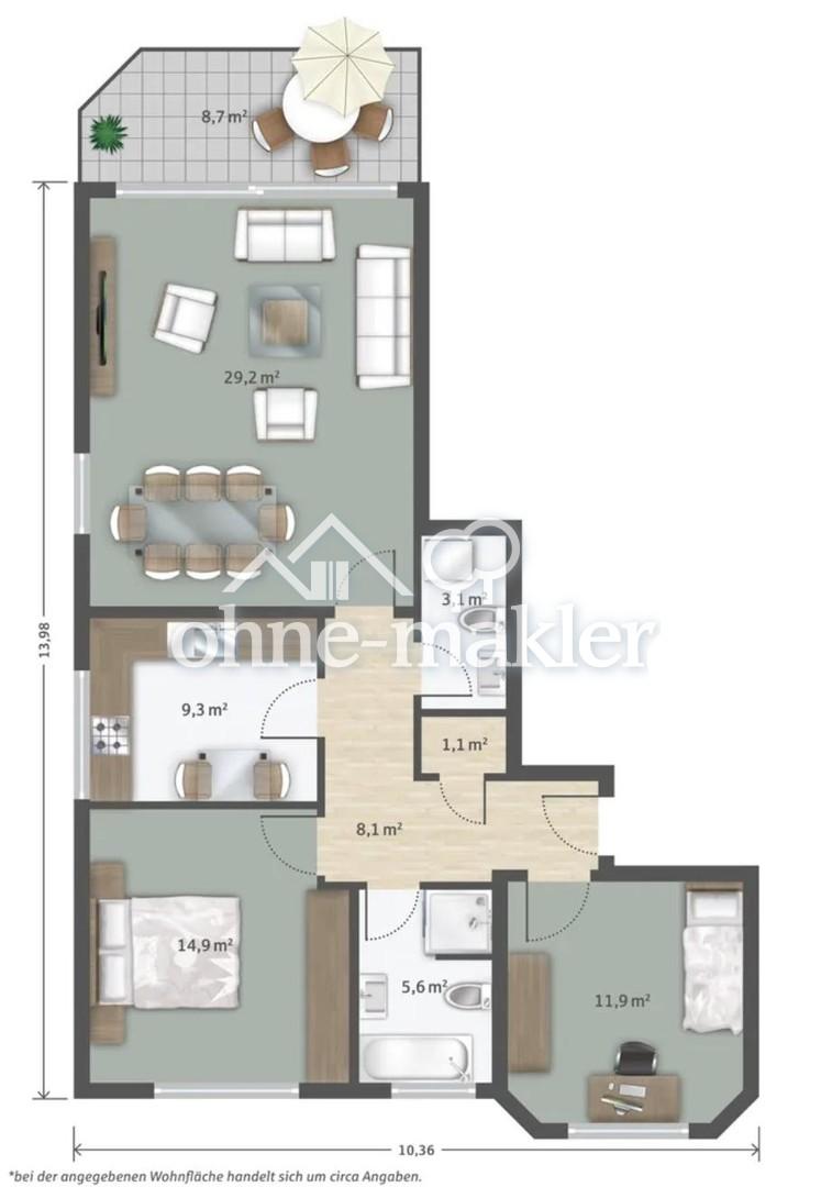 € 1.400/Monat, min. 3 zimmer