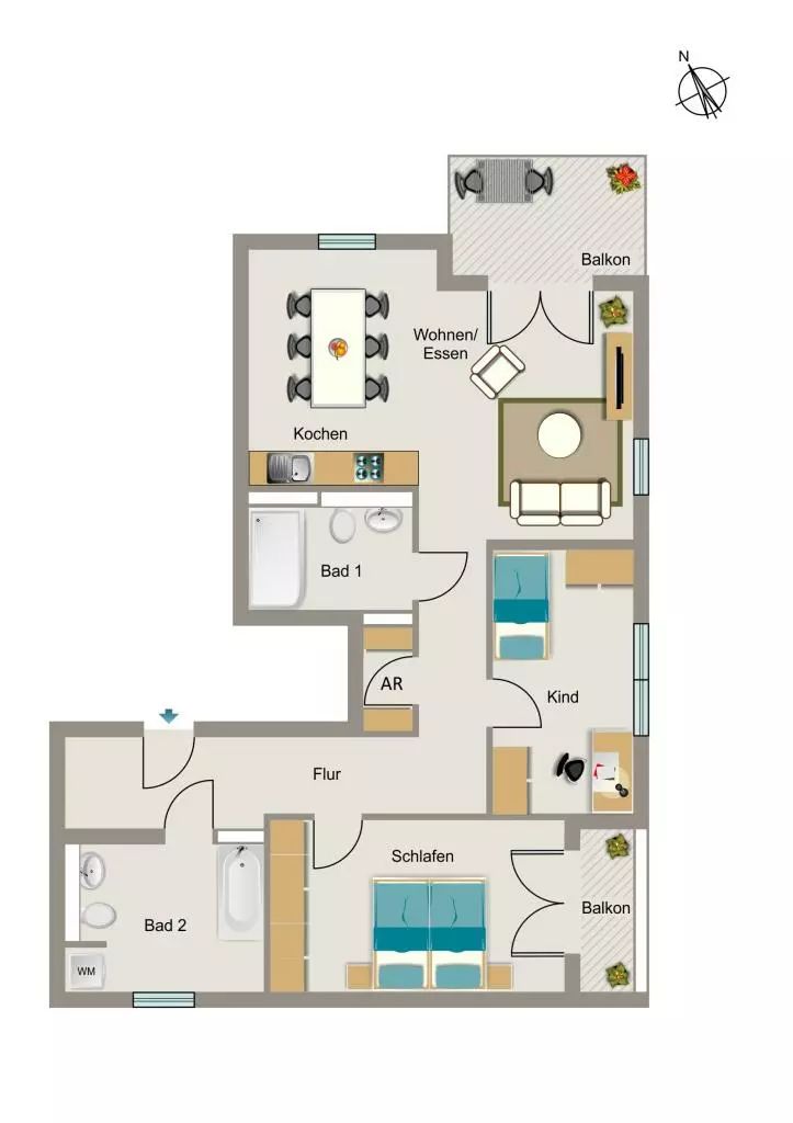 € 1.400/Monat, min. 3 zimmer