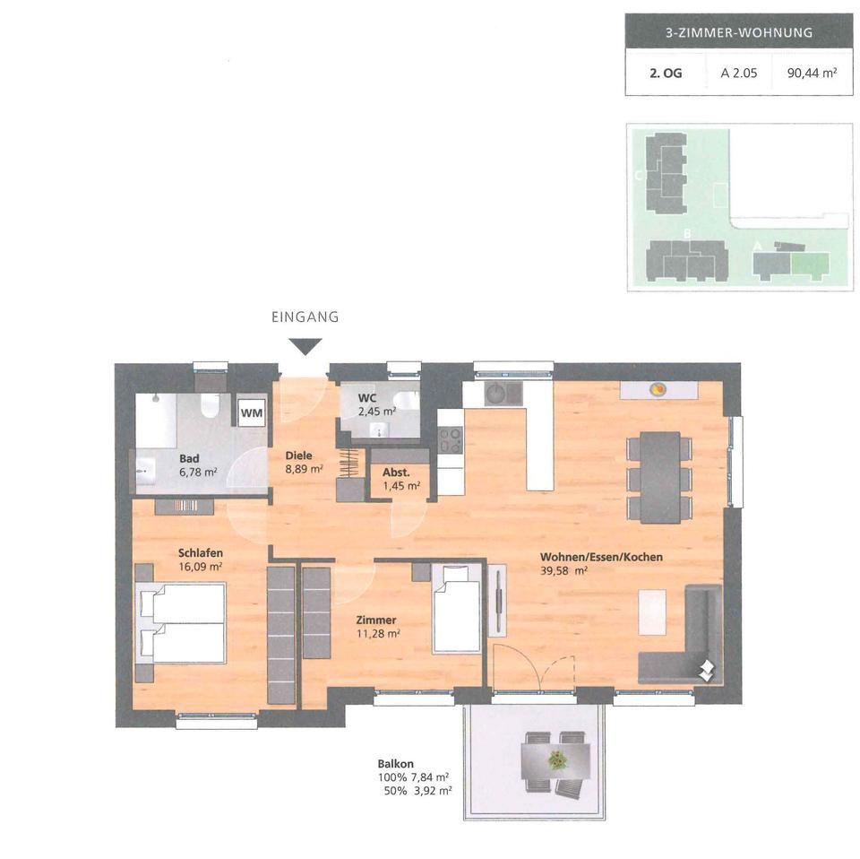 € 1.200/Monat, min. 3 zimmer
