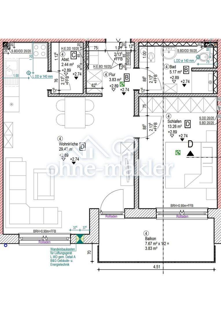€ 800/Monat, min. 2 zimmer