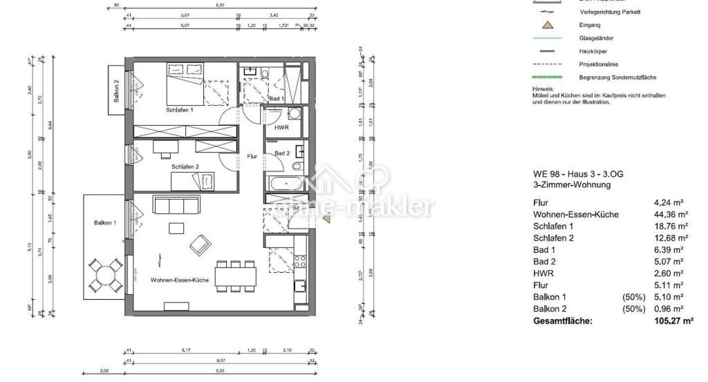 Willkommen in Ihrem neuen urbanen Rückzugsort in Regattastr 51e, 12527 Berlin! Diese moderne 3 Schlafzimmer-Wohnung bietet einen stilvollen und gemütlichen Lebensraum. Die offene Raumaufteilung eignet sich perfekt für Gäste, und die elegante Küche ist mit erstklassigen Geräten ausgestattet. Dank der erstklassigen Lage sind Sie nur wenige Schritte von den besten Restaurants, Geschäften und Unterhaltungsmöglichkeiten der Stadt entfernt. Mit einem erschwinglichen Preis von € 2.120 ist diese Wohnung eine fantastische Gelegenheit, das Leben in der Stadt von seiner besten Seite zu genießen. Verpassen Sie nicht die Gelegenheit - vereinbaren Sie noch heute einen Besichtigungstermin!