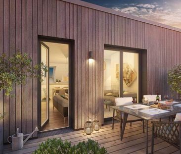 Der Wohnkomplex „BUWOG Dahmebogen“ besteht aus einem mode...