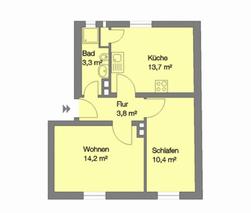 helle 2 Zi Wohnung mit Wohnküche. Beide Zimmer sind annäh...